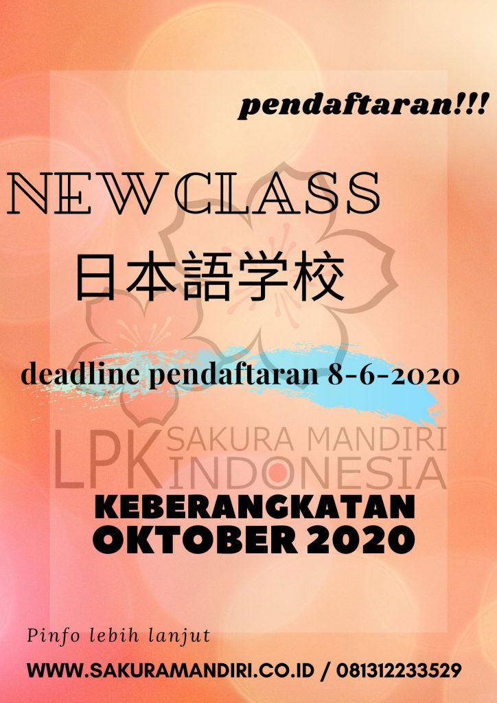 job SMI (sakura mandiri indonesia) Dibutuhkan : 100 orang pekerja untuk program kaigo (perawat) dengan kualifikasi : 1.wanita / laki-laki (wanita lebih di utamakan) 2.Usia […]